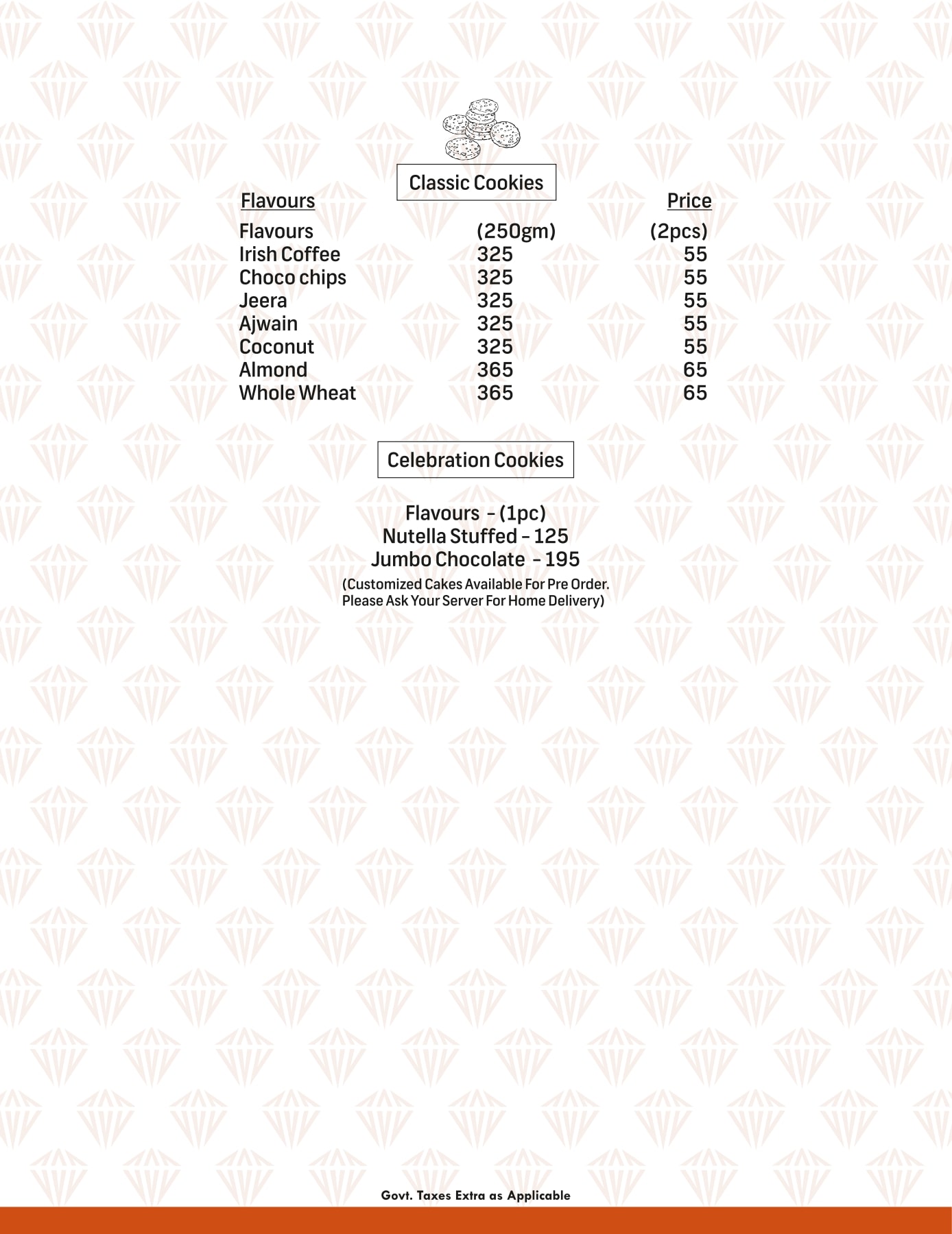 Nothing beats the comforting aroma of freshly baked cookies! At The Diamond Bakery, we offer a delightful selection of crunchy, chewy, and melt-in-your-mouth cookies, made with the finest ingredients. From classic chocolate chip and buttery shortbread to nutty delights and spiced treats, every bite is a perfect blend of flavour and texture. Whether paired with your favourite coffee or enjoyed as a sweet snack, our cookies are baked to perfection – just for you!